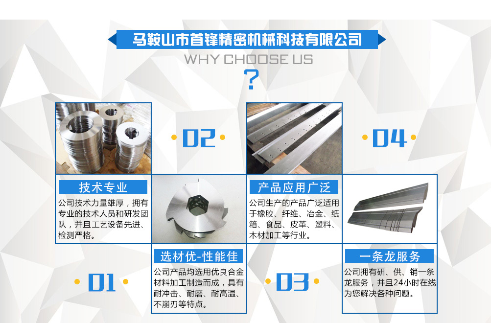 - 主打產(chǎn)品 : 剪板機刀片 圓刀片 折彎機模具 硬質(zhì)合金(鎢鋼)刀片 分條機刀片 撕碎機刀片